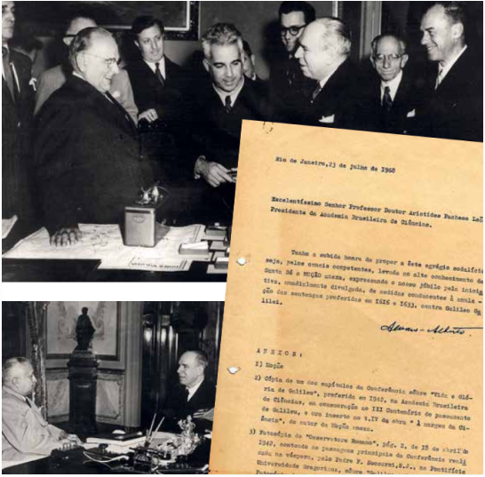 à direita, carta de álvaro alberto a pacheco leão, na época presidente da abc, sugerindo congratular a santa sé pela iniciativa de anular as sentenças que condenavam galileu galilei (23/07/1968). – acervo abc